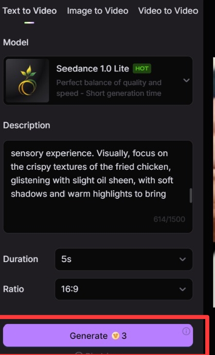 - Click in the description box to describe what kind of ASMR video you want the tool to generate.