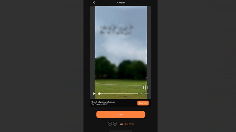 Finally, press “Apply selected effects.” Wait a while, then preview and hit “Save” to download the results to your phone.