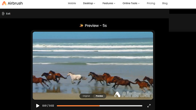 With the automatic processing, you can have a 5-second preview of your video by clicking the play icon. Then, press “Preview” or “Original” to compare the results.