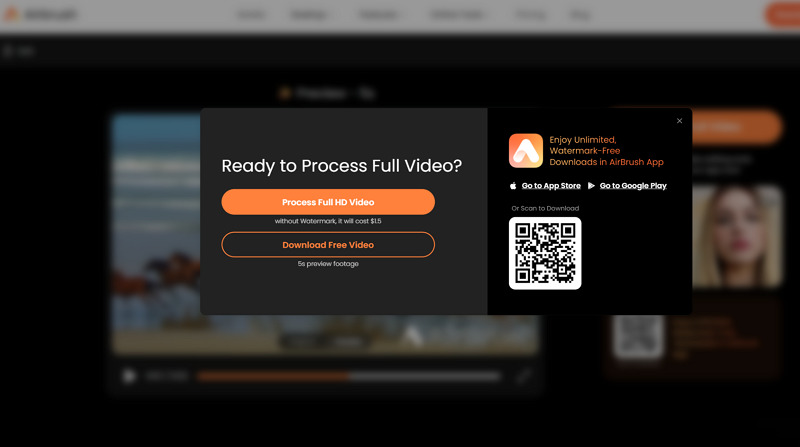 Lastly, tap the “Process Full Video” button and choose “Process Full HD Video” or “Download Free Video” to export the results. All done!