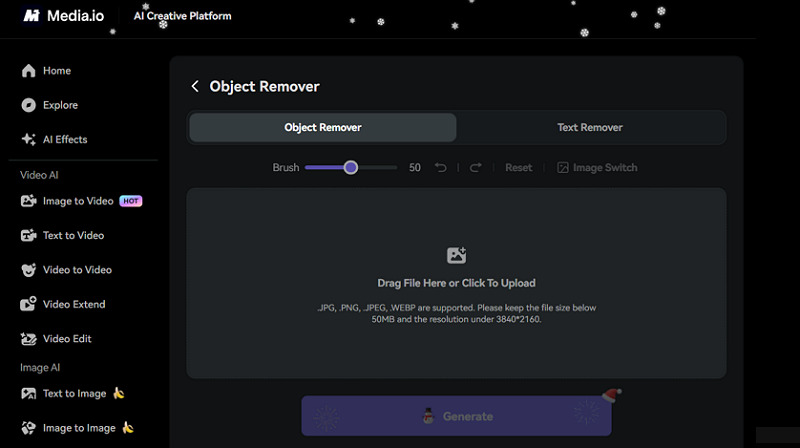 It supports multiple image formats, i.e., JPG, PNG, JPEG, and WebP. However, the file size should be under 500 MB, and the resolution should be 2840×2160. While offering fast watermark removal, it does not compromise on quality.
