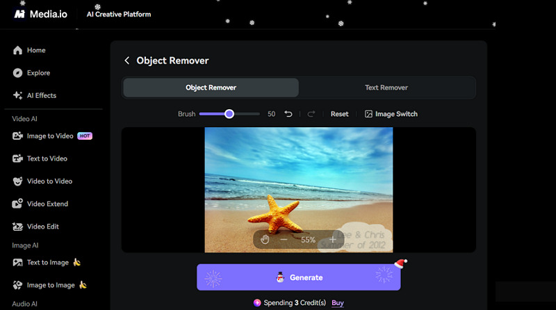 Next, adjust the brush size and cover the watermarks you want to remove. Then, press the “Generate” button.
