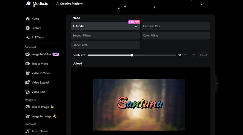 This incredible feature in AniEraser helps you eliminate transparent or semi-transparent watermarks using advanced AI. It offers various modes for different tasks, such as an AI Model for erasing objects, a Gaussian Blur for smooth & even removal, Smooth Filling, Color Filling, and Clone Patch for copying & pasting video objects into other areas.