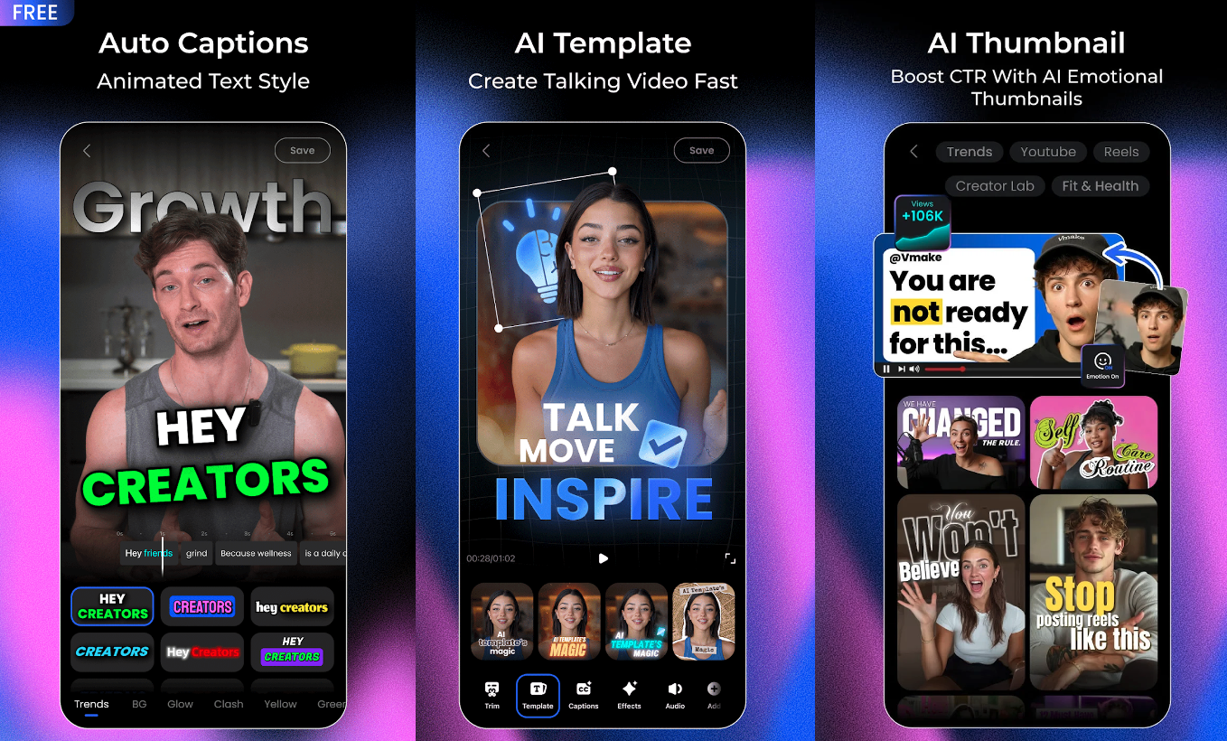 Vmake is shaped around the reality that modern creators are producing short-form content every day: TikToks, Reels, Shorts, UGC ads, product demos, and talking-head clips. The workflow is optimized so you can define your structure quickly, align everything to your soundtrack, add captions and overlays, and export without constantly repeating the same micro-action on every scene. In a Canva vs Vmake comparison, this is where Vmake really shines: instead of slowing you down as you level up your content, it helps you ship more videos in less time.