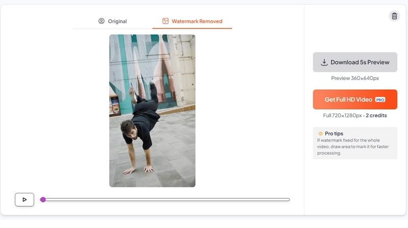 Once you see the watermark-removed video, hit the “Download 5s Preview” tab to export it to your device. That’s all!