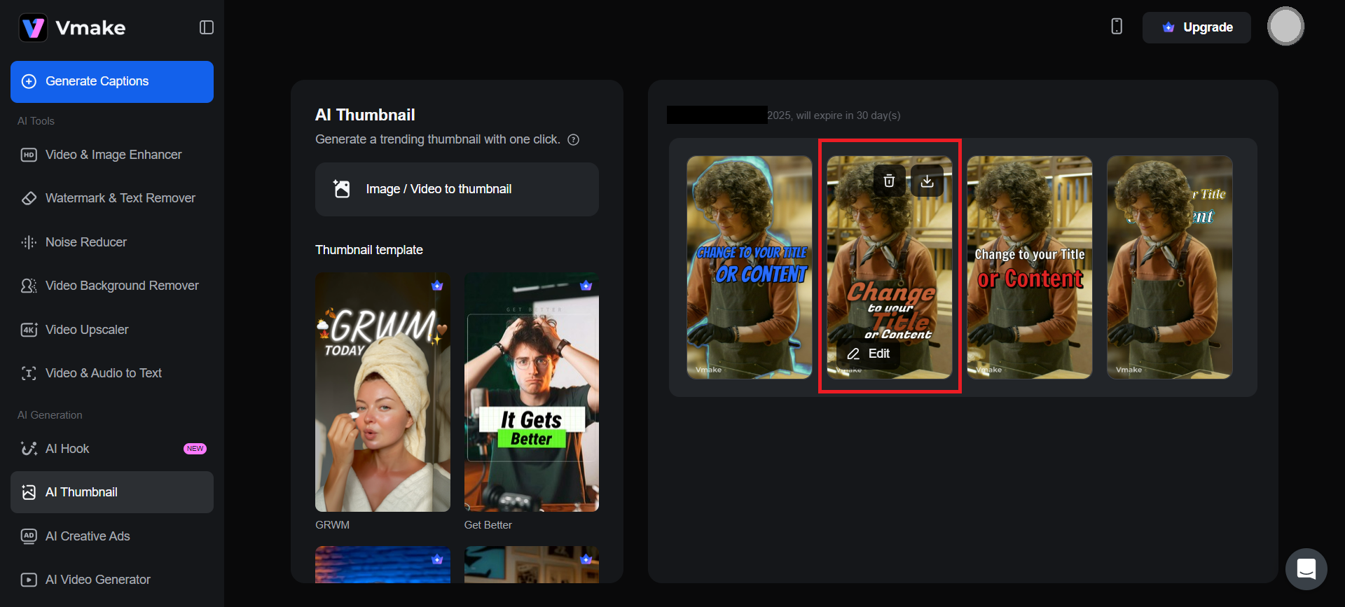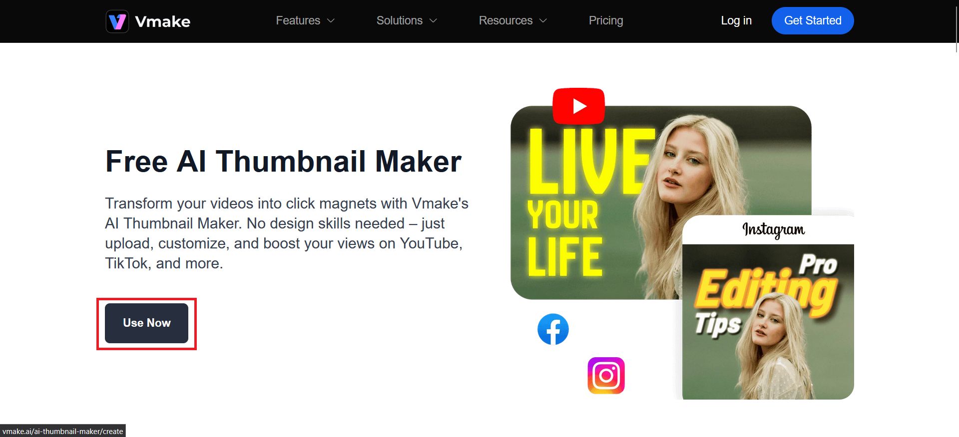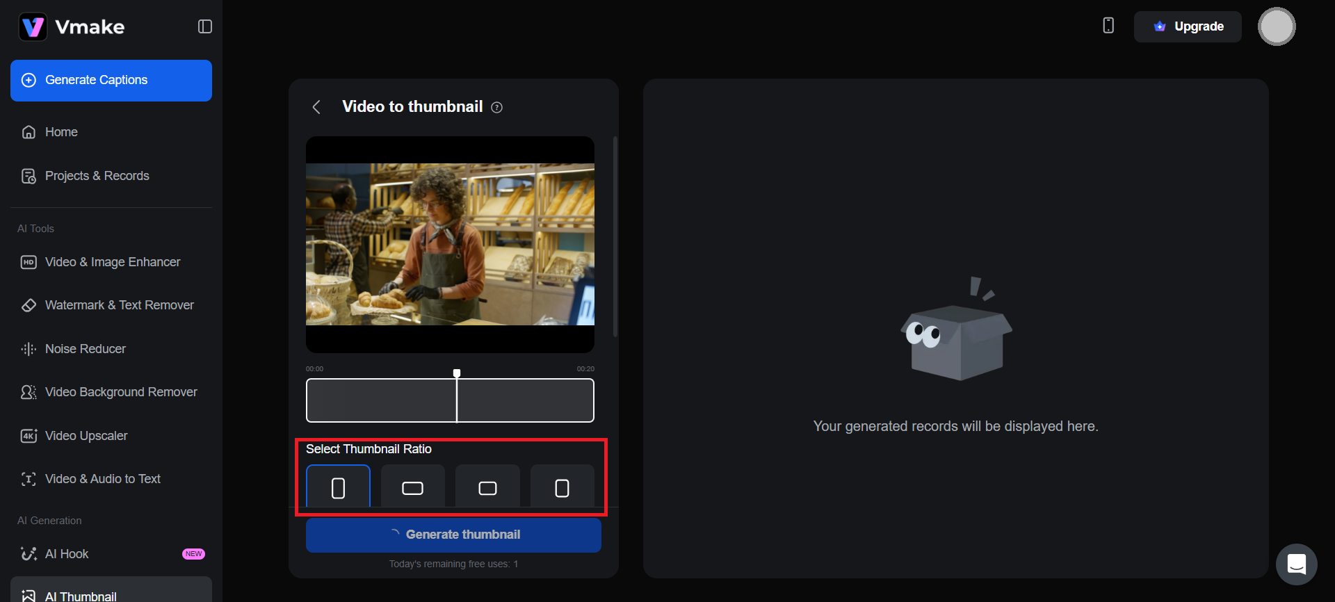Visit Vmake’s AI Thumbnail Maker first.