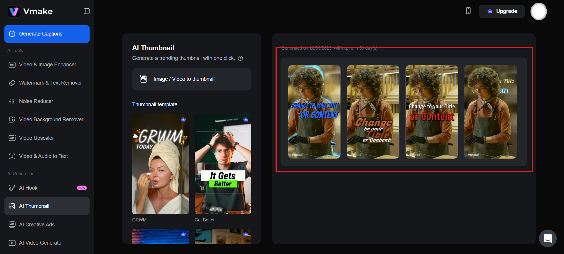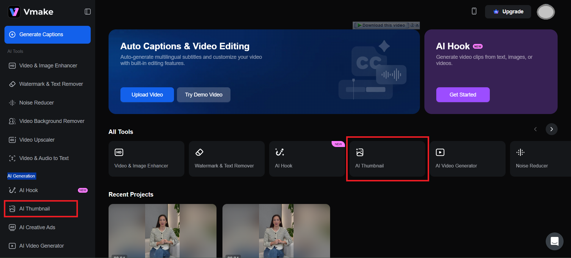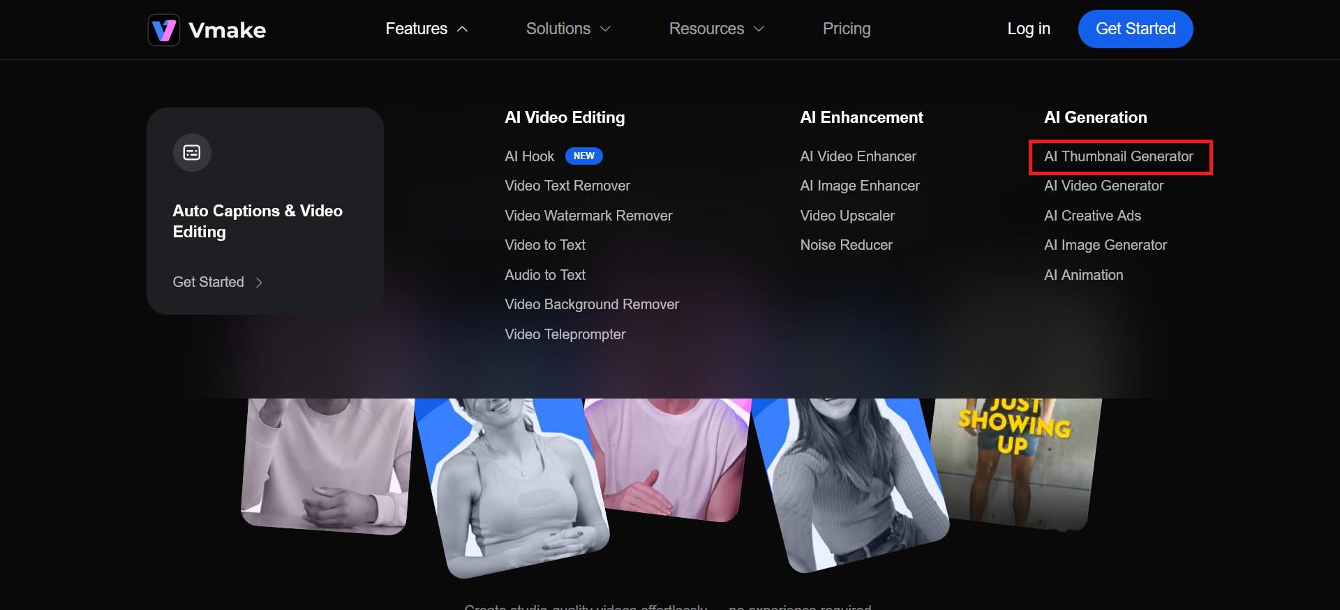 Visit Vmake’s AI Thumbnail Maker first.
