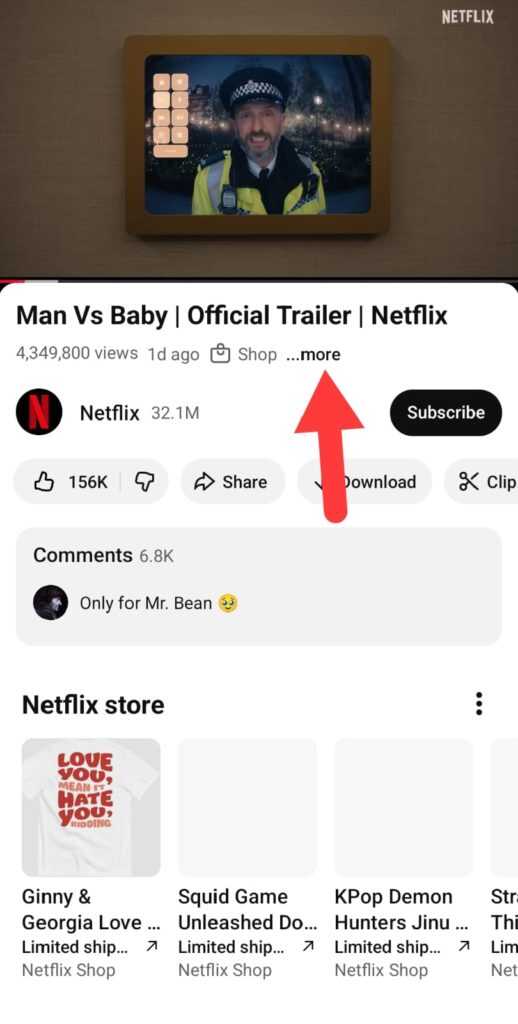 - Step 2: Click on it to play it. Just below the title, you will see a “More” option.