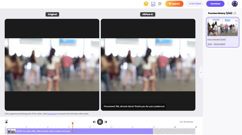 HitPaw Video Enhancer is an advanced enhancement solution available for online, desktop, and mobile users. Since each version offers different features, let’s explore the performance of each one based on my hands-on experience:
