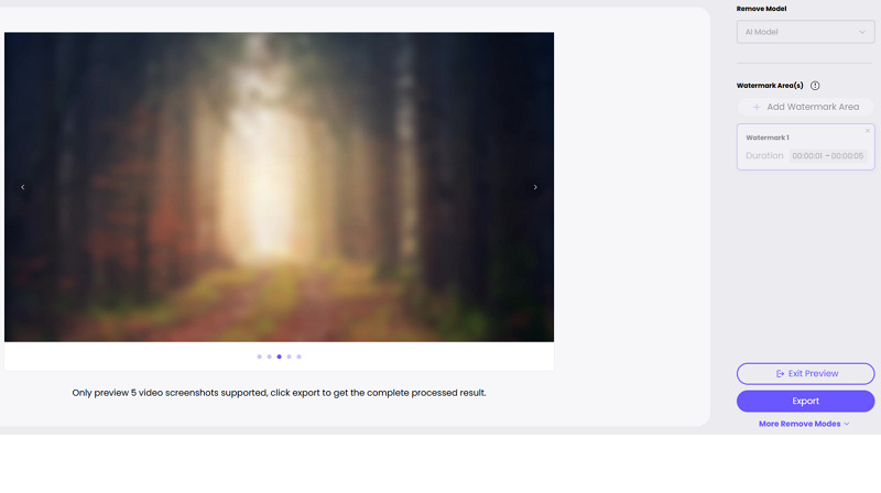 In addition, it provides desktop users with five powerful modes for removing video watermarks. It includes AI Model, Smooth Filling, Gaussian Blur, Color Filling, and Matte Filling. While supporting various video formats, the AI can automatically detect and remove marks. You can even enjoy real-time preview and high-quality output.