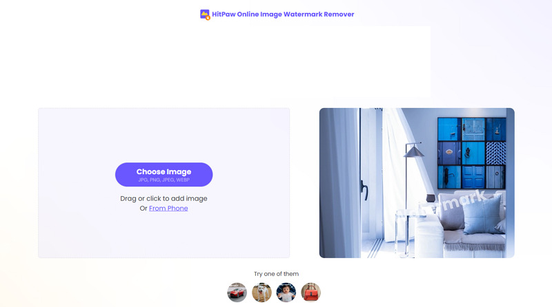 The first step is to open the HitPaw Online Image Watermark Remover. Now, click âChoose Imageâ or âFrom Phoneâ to import the photo.