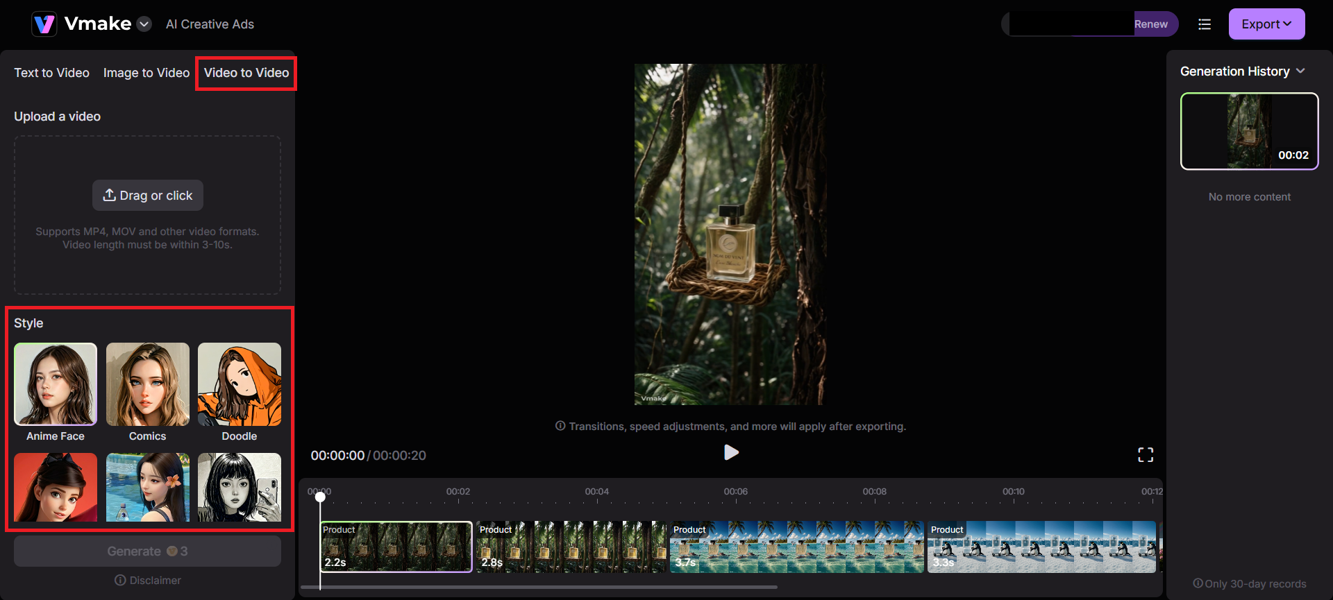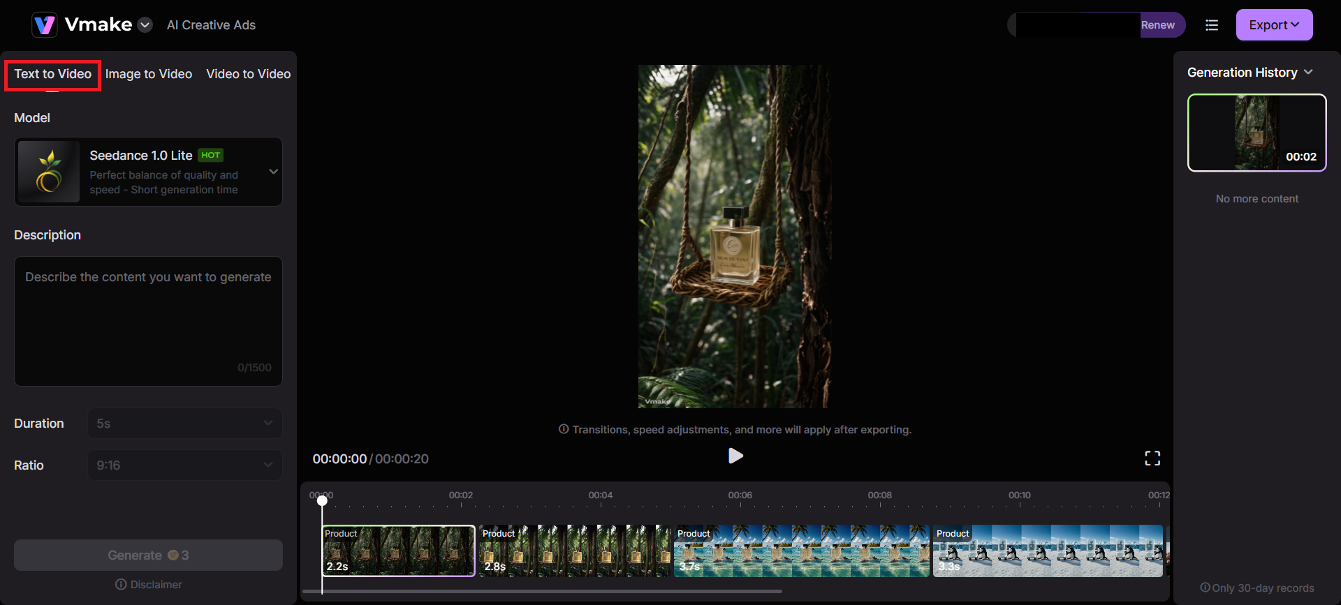 Vmake.ai is a rising star in the AI-powered creative space. It grants marketers, businesses, and content creators access to transitioning ideas into dynamic video ads.