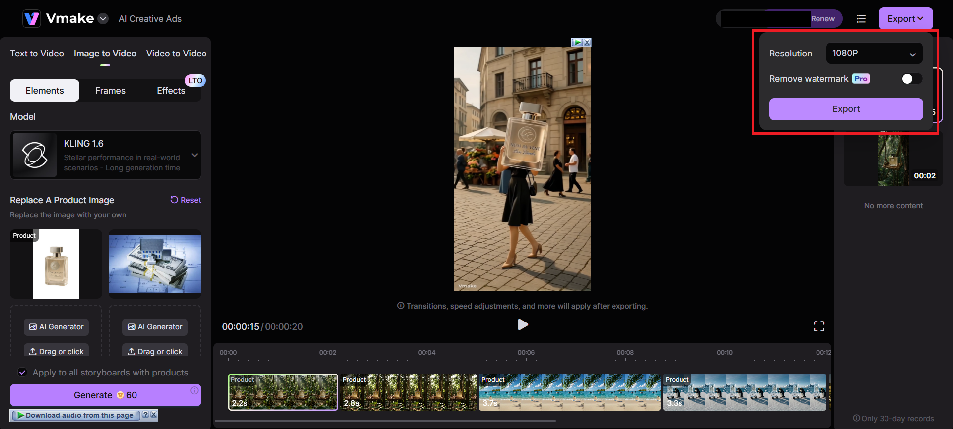 Figure 1 – AI Creative Ads on Vmake