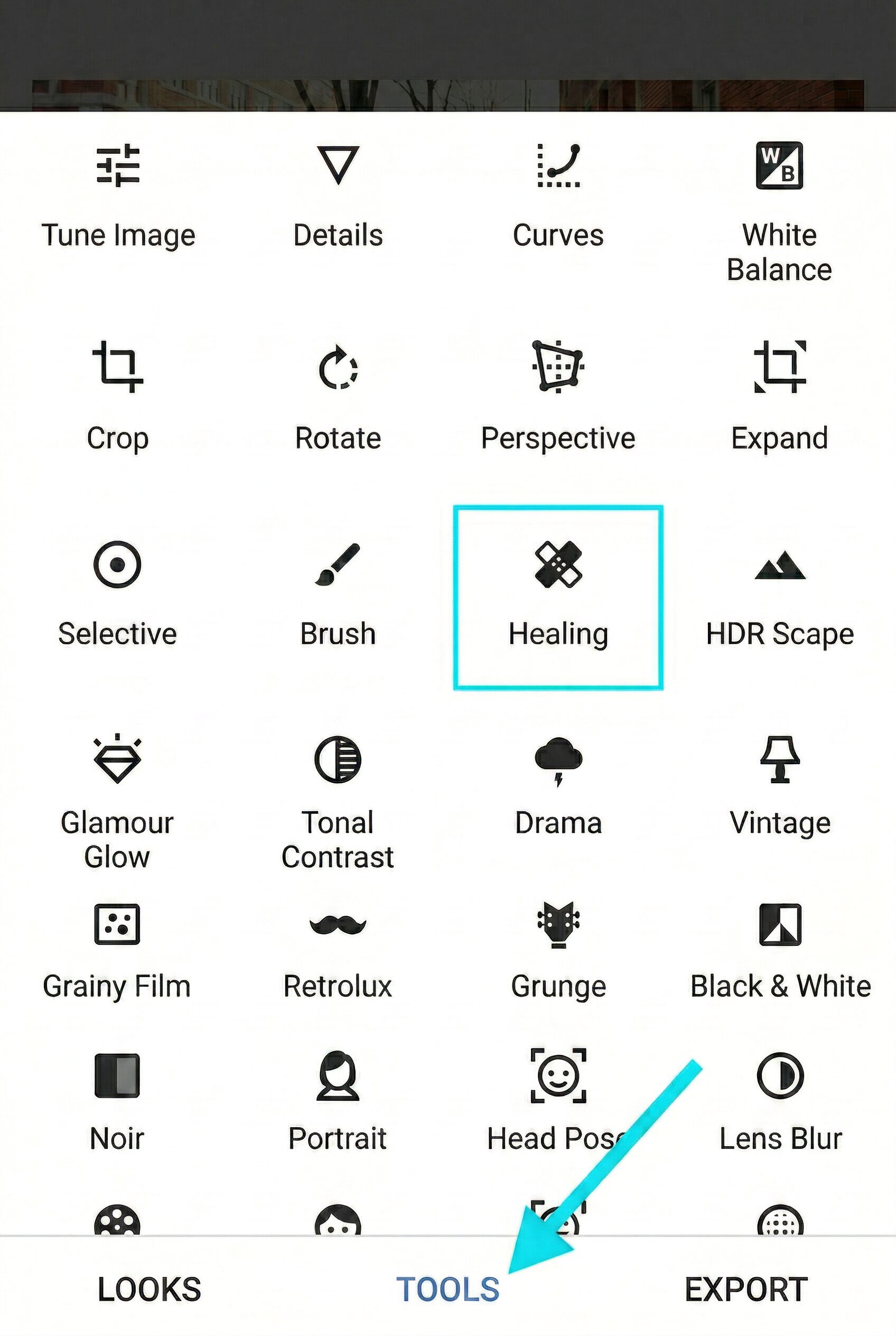 Access the Healing Tool: Tap on "Tools" at the bottom of the screen and select the "Healing" icon from the menu.