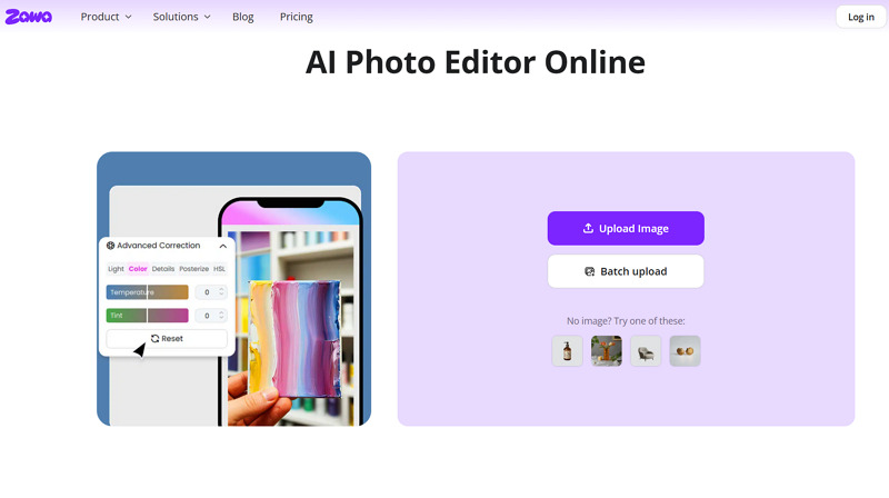 First of all, open the Zawa AI Photo Editor website and click the “Upload Image” button to import the required file.