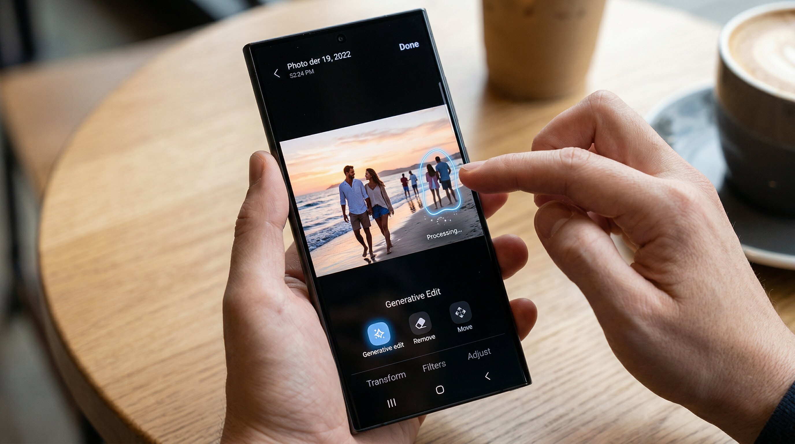 Newer Samsung Galaxy phones have a feature called Generative Edit built into the gallery app. You select what you want removed and the AI attempts to fill in the space behind it. It works reasonably well in simple situations.