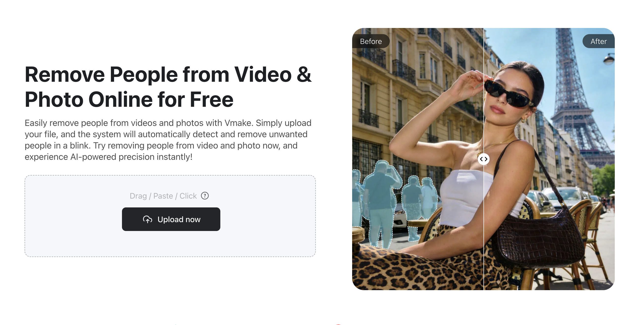 engine can fill in the background consistently across all frames.Vmake Remove People Preview and Export: Review the motion to ensure it is fluid and then download your professional grade video.