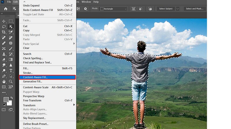 Next, right-click on the person you’ve selected and choose the “Content Aware Fill” option from the menu.