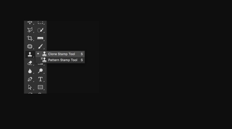 Open the required picture in Photoshop. Now, click the stamp icon from the side toolbar and then select the “Clone Stamp tool.”