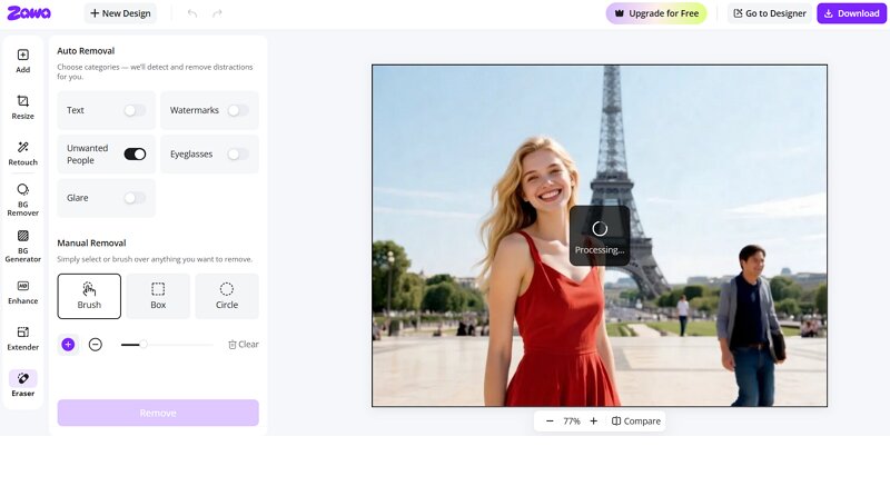 Next, select the “Eraser” tool from the side column. Then, turn on the “Unwanted People” switch. You can also manually paint over the unwanted people.