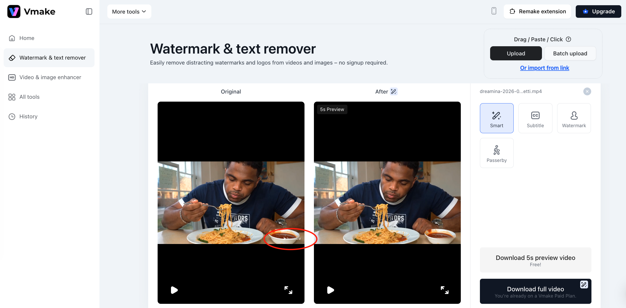Removing the watermark is a great first step, but AI-generated videos from Seedance 2.0 can sometimes suffer from slight blurring or that tell-tale "uncanny" AI texture. To truly make your content stand out, you can take it a step further using Vmake’s Video Enhancer.
