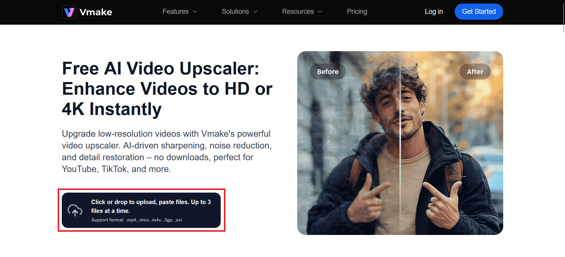 Vmake.ai is a browser-based and AI-powered video enhancement platform. It simplifies the upscaling process for creators, marketers, and restoration teams. It combines deep learning with intuitive UX to deliver high-resolution output with a few clicks.