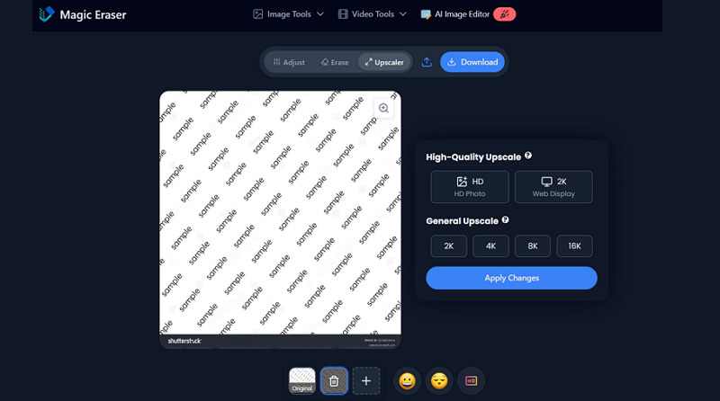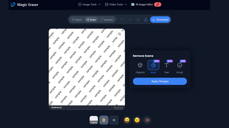 It will automatically remove the watermark. However, you can use the “Erase” option to manually delete the mark, objects, text, or emoji. Then, tap “Apply Changes.”
