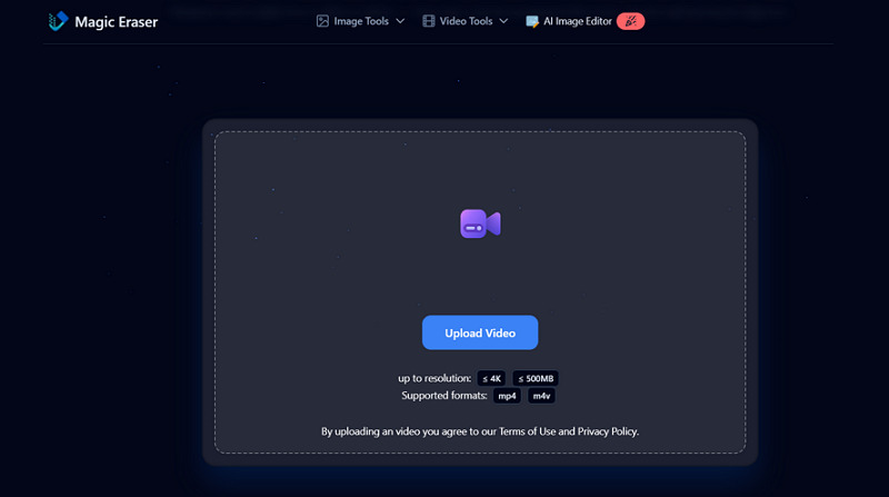 Magic Eraser Video Watermark Remover assists in removing both static and dynamic watermarks from videos, with fast uploads and one-click removal. You can upload videos in MP4, MOV, AV1, or M4V format, but under 500MB to remove marks, subtitles, timestamps, and logos with pixel-level restoration.