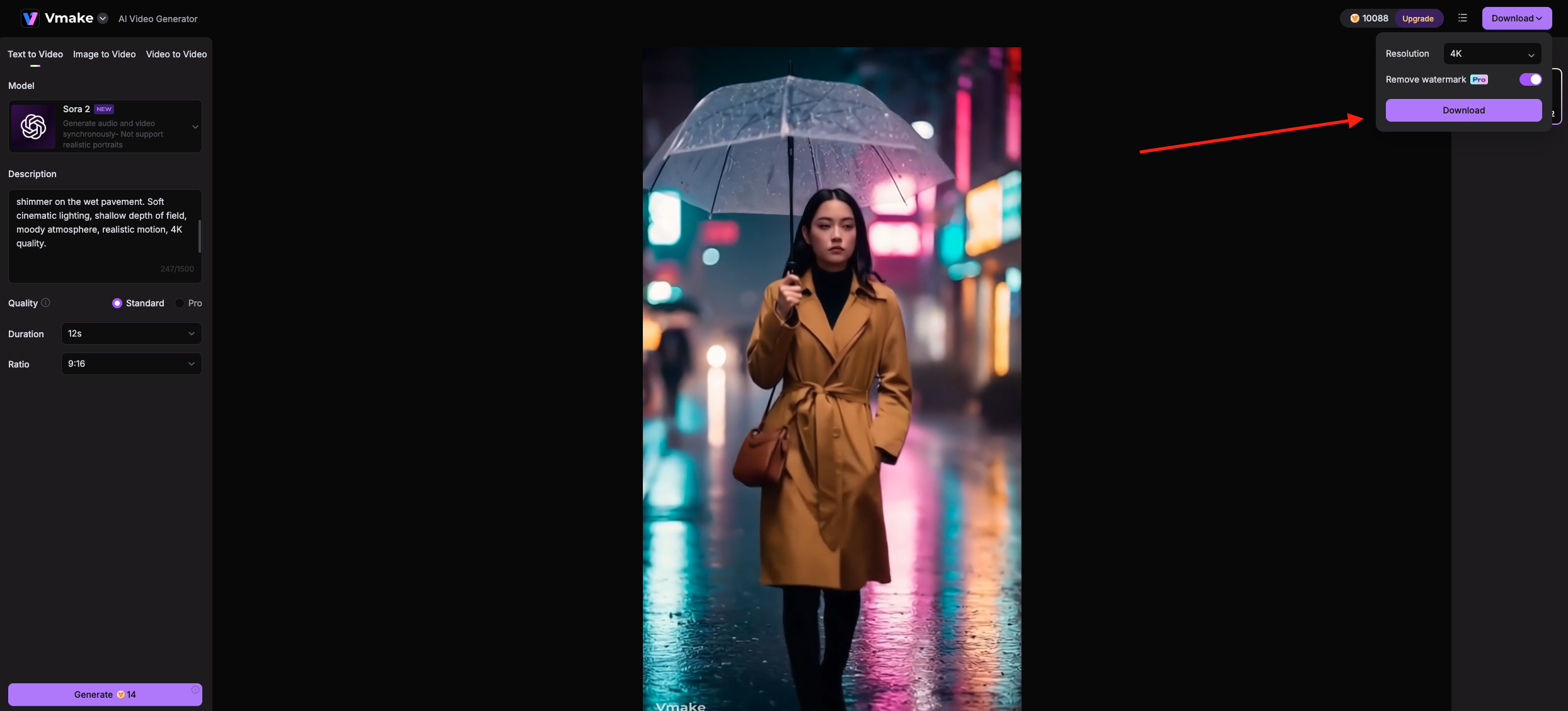 If you’re a Vmake Pro user, you can also download the video without a watermark.
