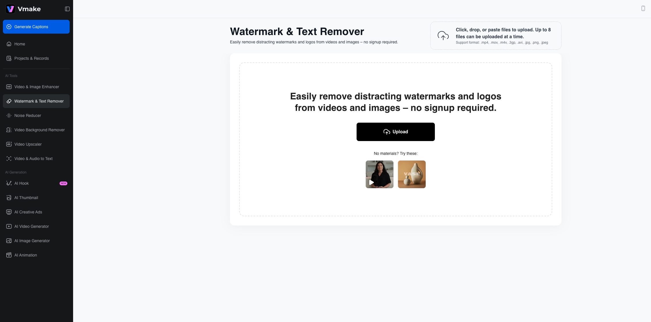 You can use Vmake’s Watermark & Text Remover to erase the Sora watermark in just one click — fast, clean, and professional.