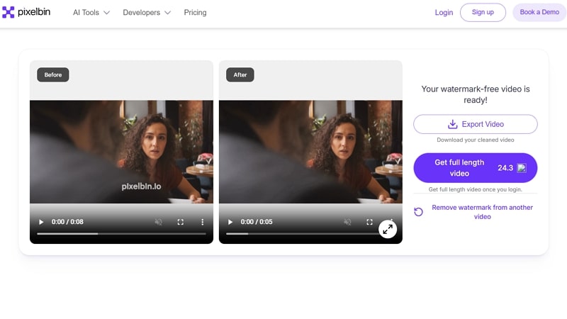 Pixelbin Video Watermark Remover can remove both dynamic and static watermarks, but the results vary. It can detect and remove unwanted text, logos, stamps, and marks, delivering clean, high-quality output.