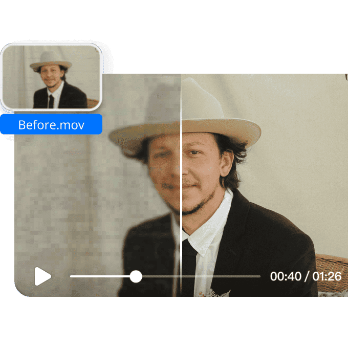 The Vmake video enhancer excels at addressing the common shortcomings of video generation or older, grainy clips.