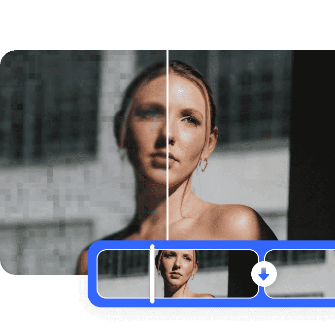 Enhance one-click will automatically denoise, sharpen and enhance resolution in seconds. To do an even better job, experiment with sharpness, exposure and color sliders to make sure it looks correct.