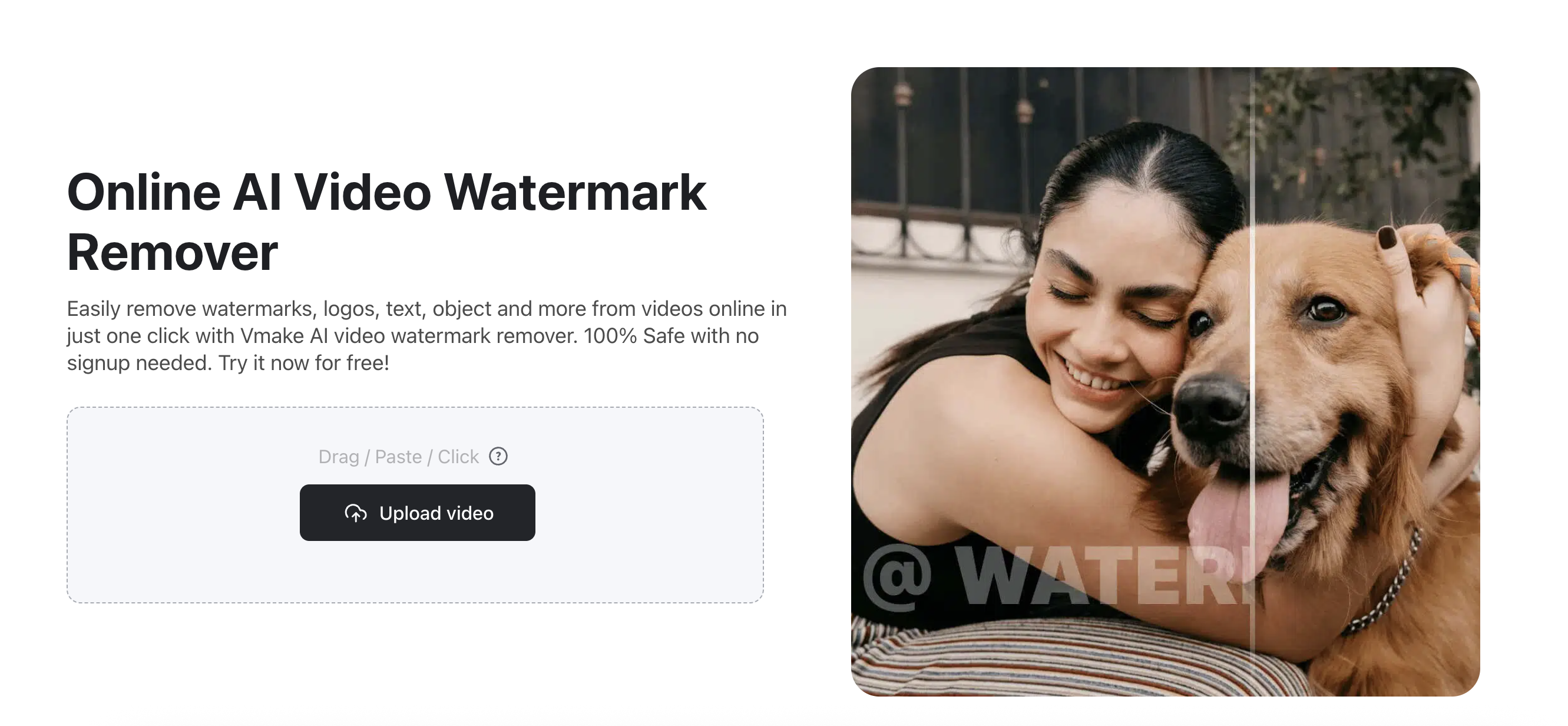 Even the best AI models occasionally produce digital "ghosts" or unwanted watermarks. Vmake Video Watermark Remover uses generative fill to erase these artifacts without blurring the background, ensuring your video looks 100% human-made and professionally shot.
