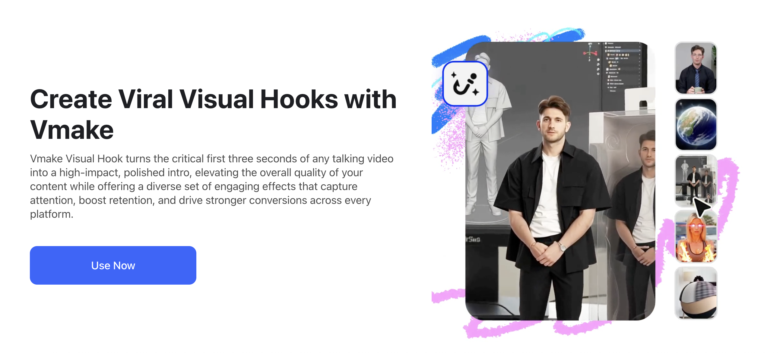 Social media is an attention economy. Vmake provides the "triggers" that keep users from scrolling past.