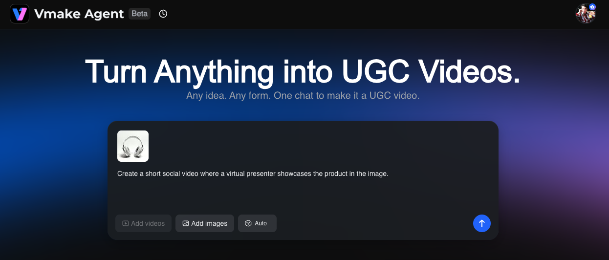 Vmake Agent makes that shift possible — turning anything into a UGC video and giving you the freedom to spend less, create more, and sell smarter.