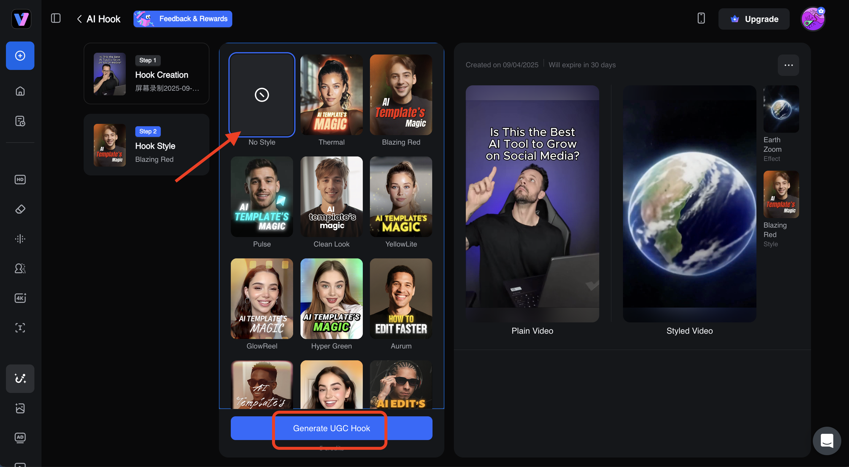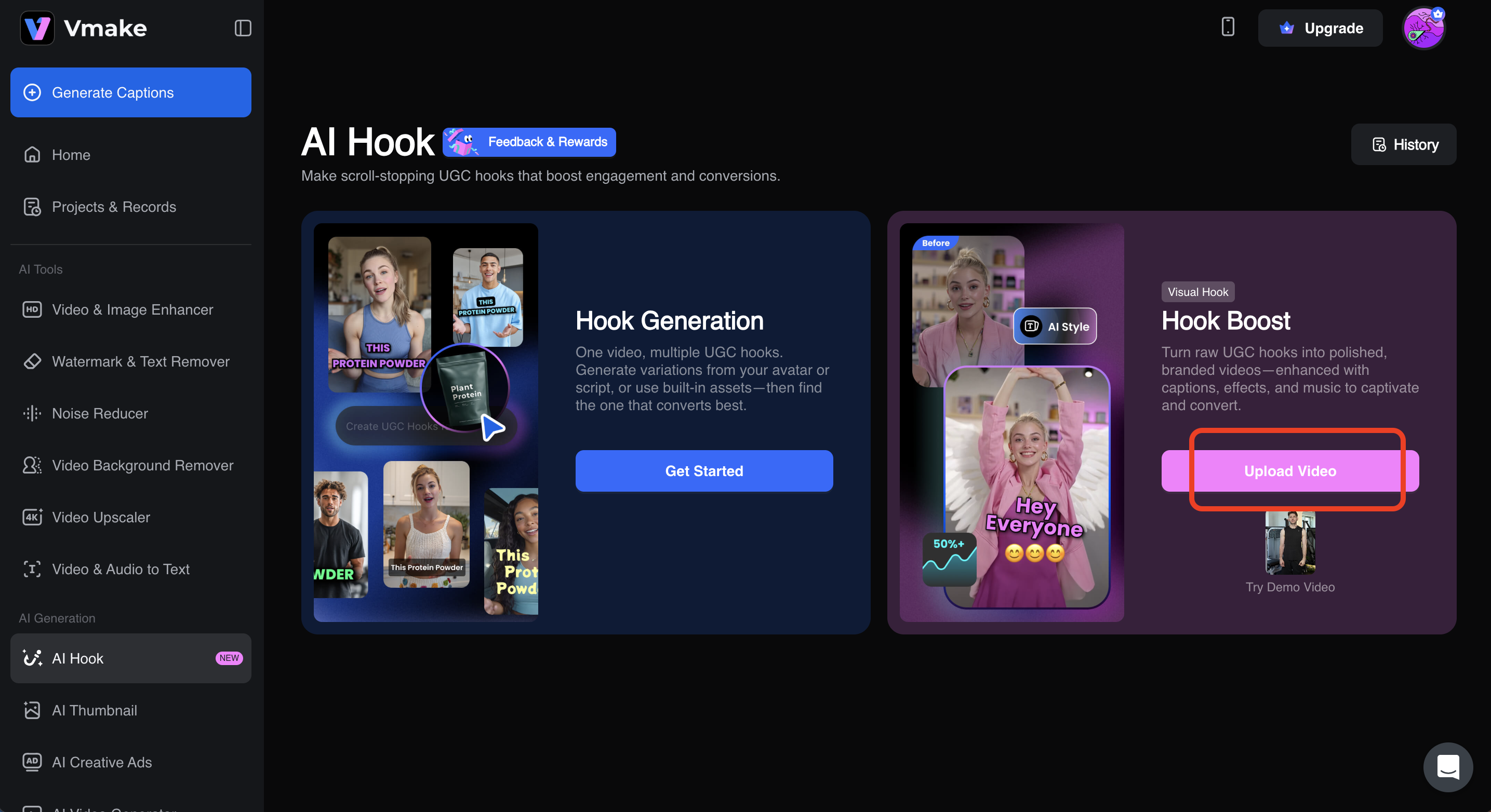 - Navigate to the Vmake Hook Generator and click on Hook Boost.