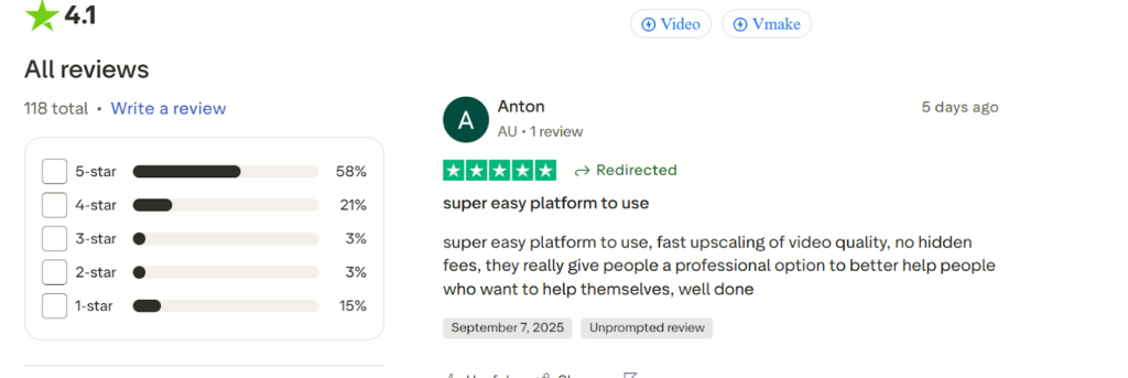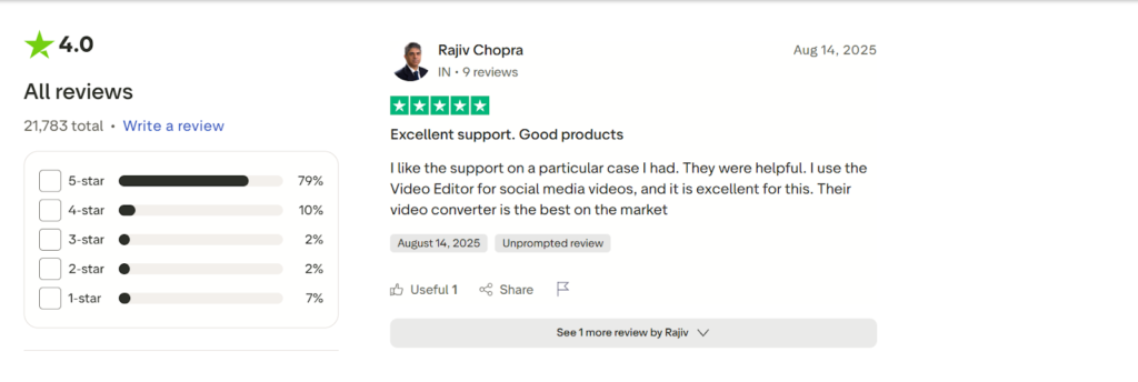Movavi got a 4/5 rating from PCmag and Trustpilot .