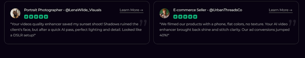 TensorPix is a video enhance AI tool that can not only enhance the video resolution up to 4k but also compress the file size while maintaining its original quality. The best thing about this tool is that it ensures natural results.