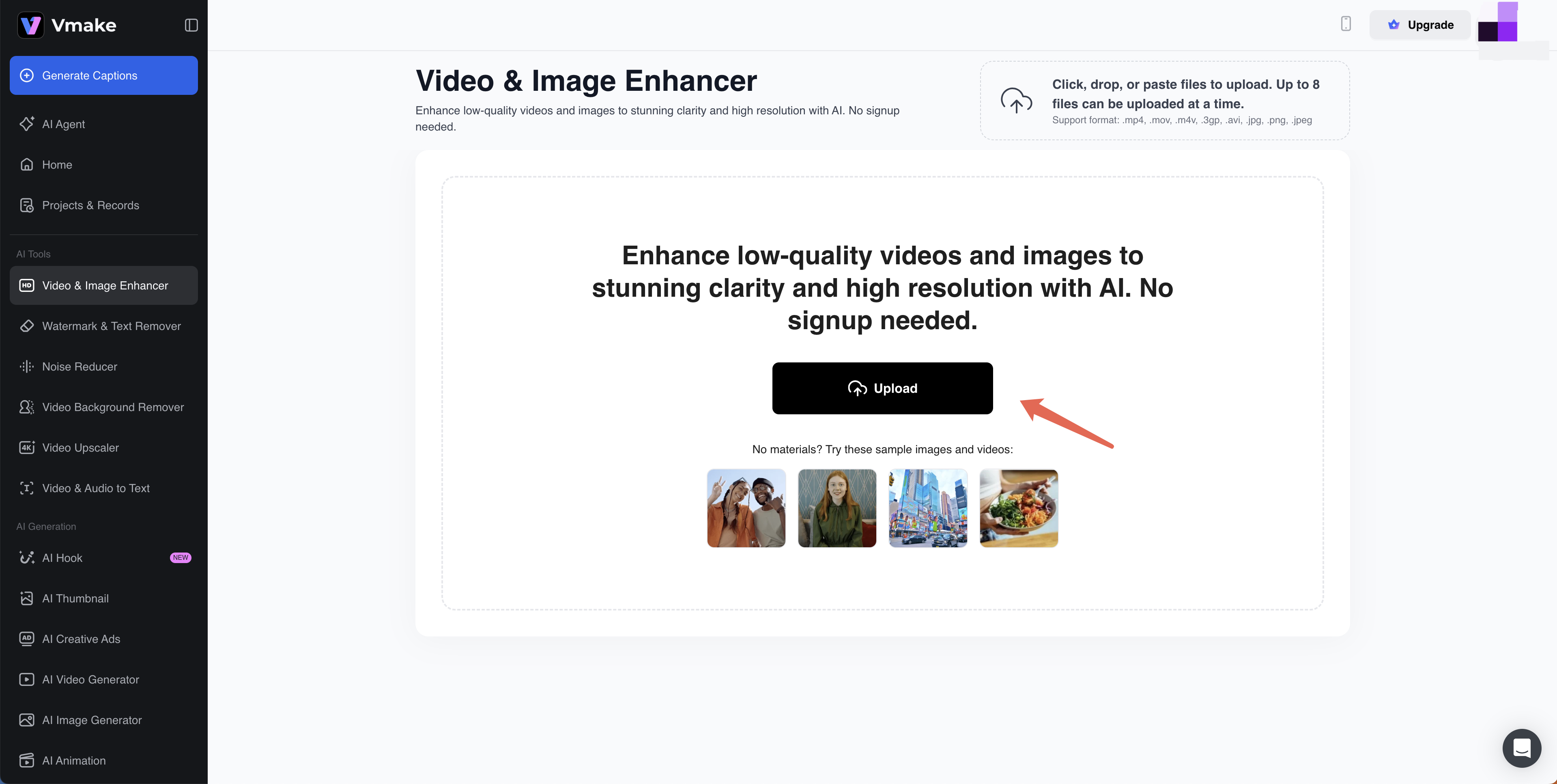 Vmake is an all-in-one AI video editing platform built for creators, marketers, and businesses who want high-quality results without juggling multiple tools. Beyond just enhancing video quality, it also covers: