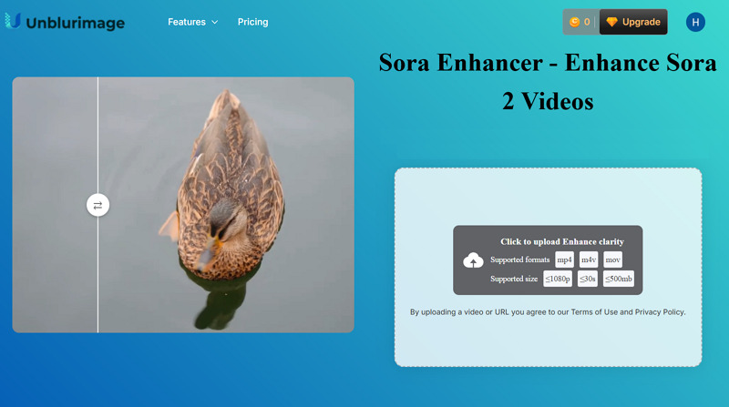 The first step is to access the Unblurimage Sora Enhancer website. Now, tap the specific section to import the video file.