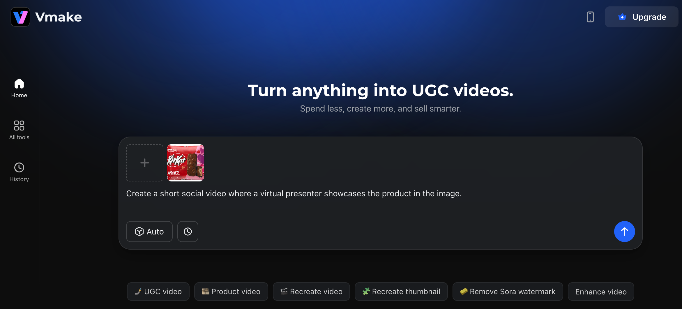 Don’t want to film yourself? Use Vmake to generate UGC videos.