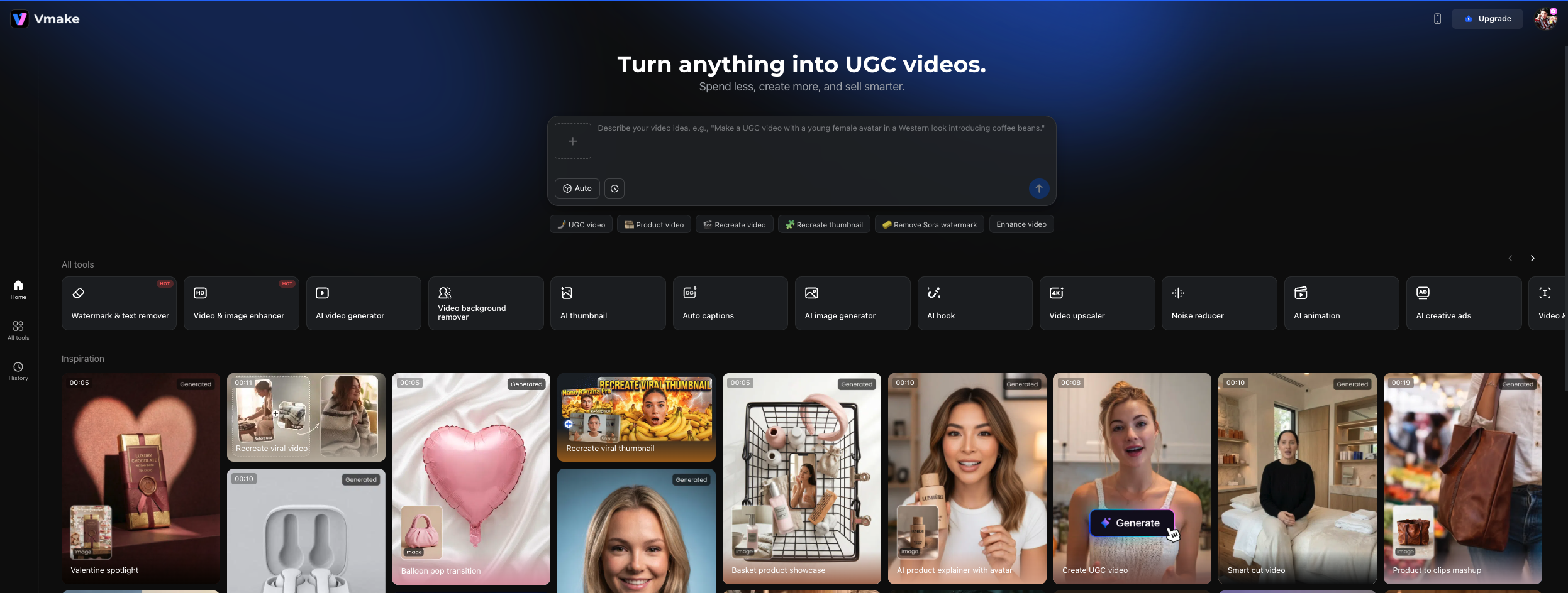 If you need a high-converting UGC ad quickly, Vmake is the ultimate AI video solution. It offers a wide range of UGC capabilities, including: