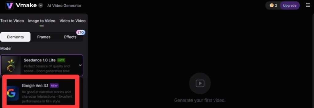 - Step 1: First, go to the Vmake AI video generator and choose Veo 3.1 as a model to create the reel.