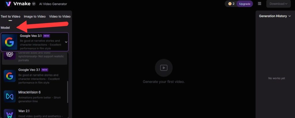 In addition, users can now create longer videos using the “scene extension” feature. This makes it an ideal tool for multi-purpose use. However, if you are unable to access it or understand the interface easily, you can try Vmake’s integration of Veo 3.1. It is not only easy to access but also easy-to-use. You also get freedom to choose different models for different outputs.