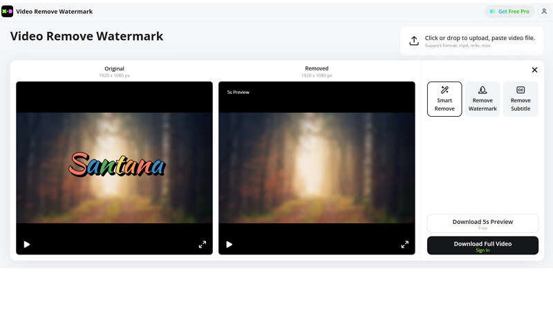 Finally, press the “Remove” button and let AI complete the processing. Once removed, hit “Download 5s Preview” or “Download Full Video.” All done!