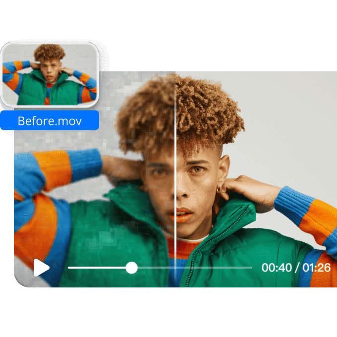 Our AI color correction upscaler offers frame-level enhancement while preserving aspect ratio and format. You’ll get professional-level results in minutes—no editing skills required. Just upload, enhance, and share your upgraded videos anywhere.